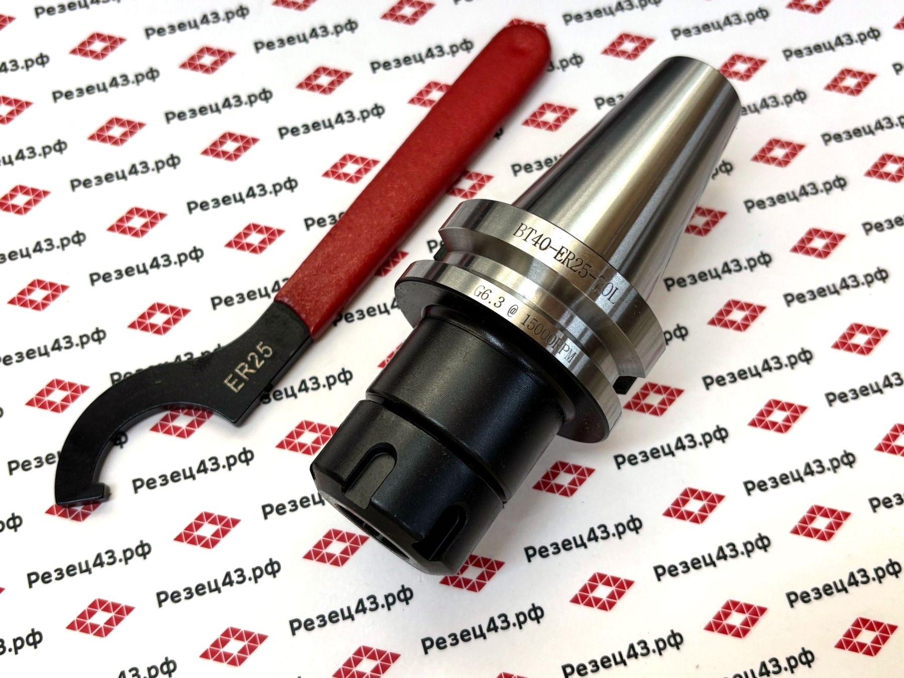 Цанговый патрон BT40 (ISO40) с ключом и с набором цанг ER25 в деревянном кейсе BT40-ER25-15PCS(П2)